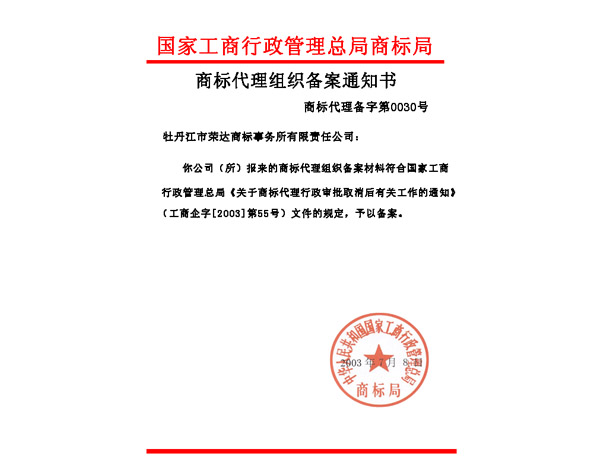 商標局備案證明 資質證書